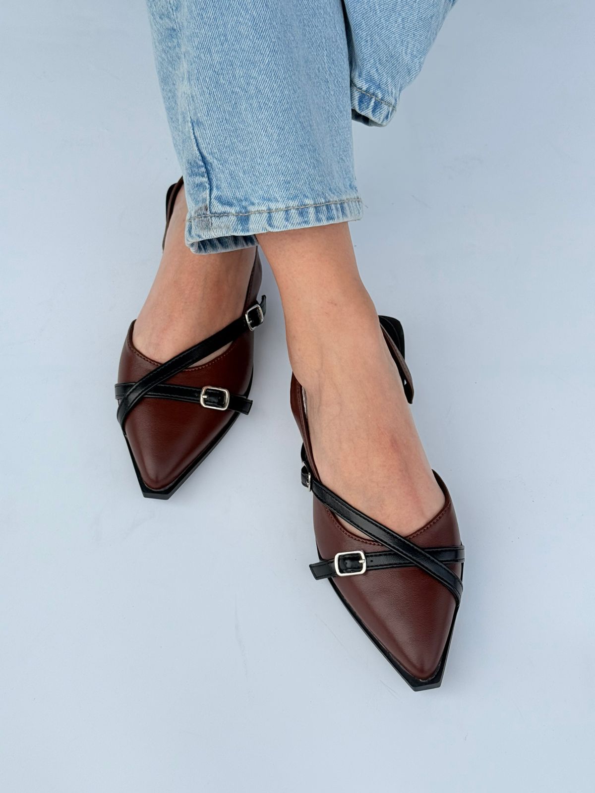 ¡Sofisticación y calidez en un solo paso! La Ballet Louisa en color café (o vino/terracota) es la alternativa perfecta al negro, añadiendo un tono más rico y versátil a tu vestuario. Su estilo plano y cómodo, combinado con las correas cruzadas, te permite estar regia y activa sin que tus pies sufran. Un par imprescindible para tus looks de transición y oficina.