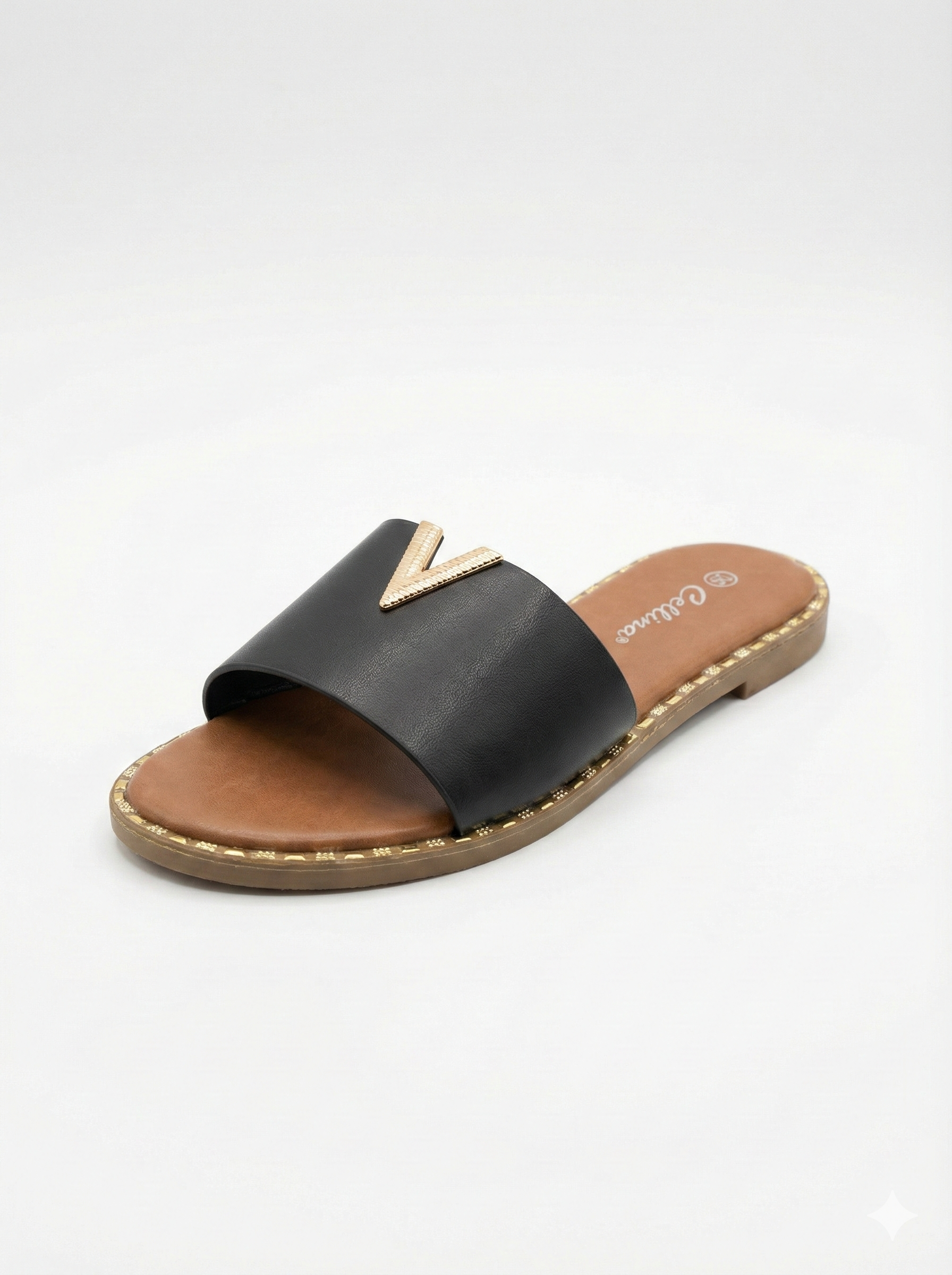 Sandalia Plana V-Gold Negro