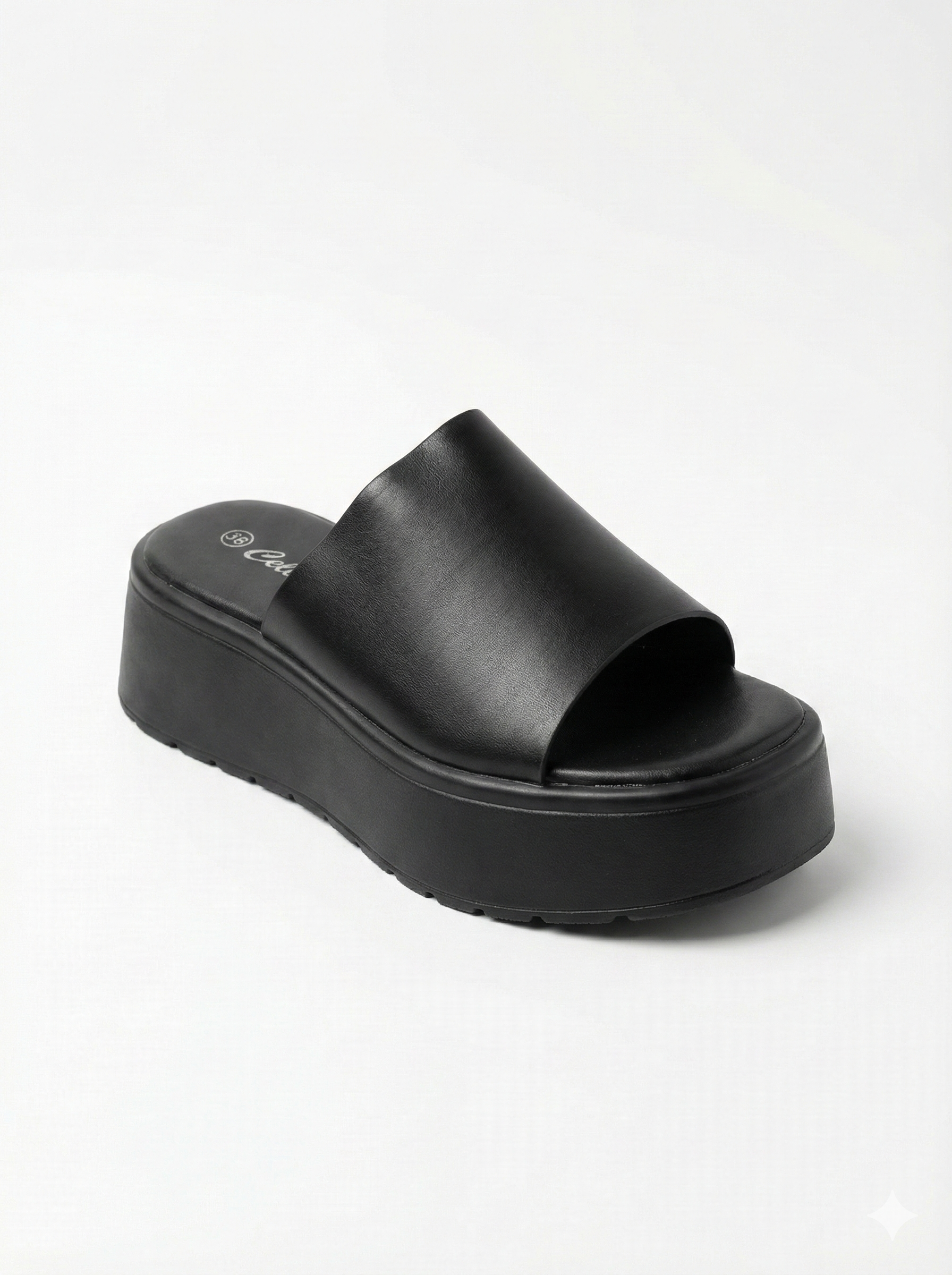 ✨💕 Eleva tu estilo diario con estas sandalias de plataforma que definen la tendencia urbana actual. Su diseño minimalista en negro total te da esa altura extra que buscas, manteniendo la comodidad absoluta para que recorras la ciudad sin cansarte. Son el complemento perfecto para tus jeans favoritos o looks casuales.