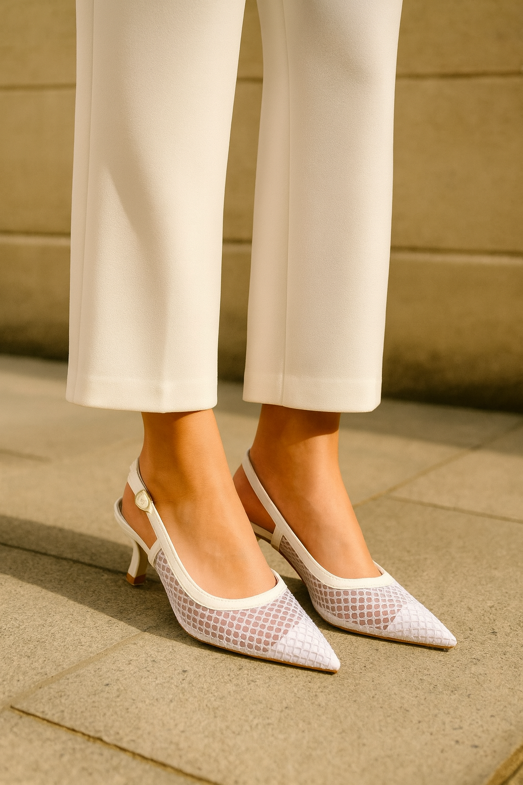 Estos Tacos Fenz de color blanco son la opción perfecta para quienes buscan un estilo elegante y a la moda. Con su diseño semitransparente y un bajo taco de 5 cm de altura, te brindarán comodidad sin sacrificar el estilo. ¡Haz una declaración de moda con estos tacos súper chic!
